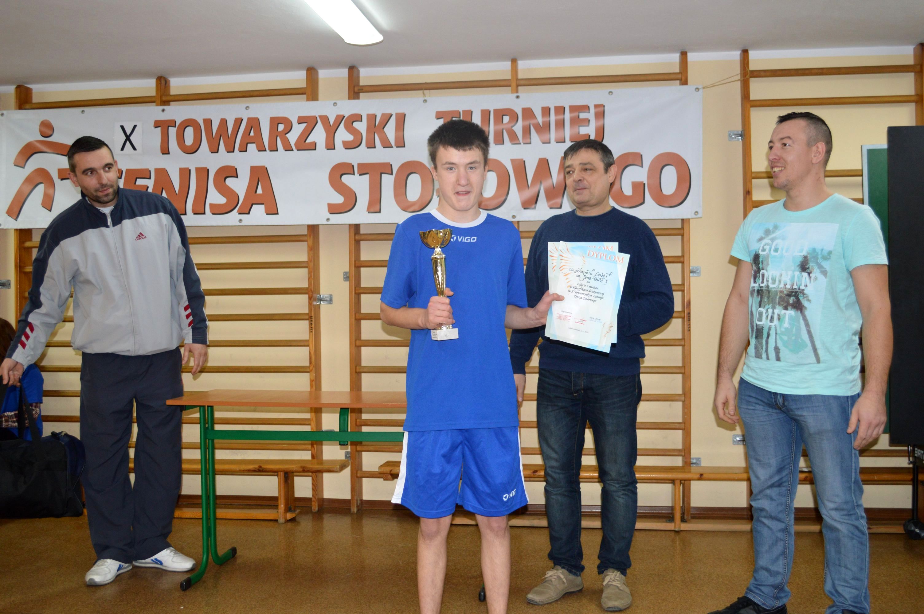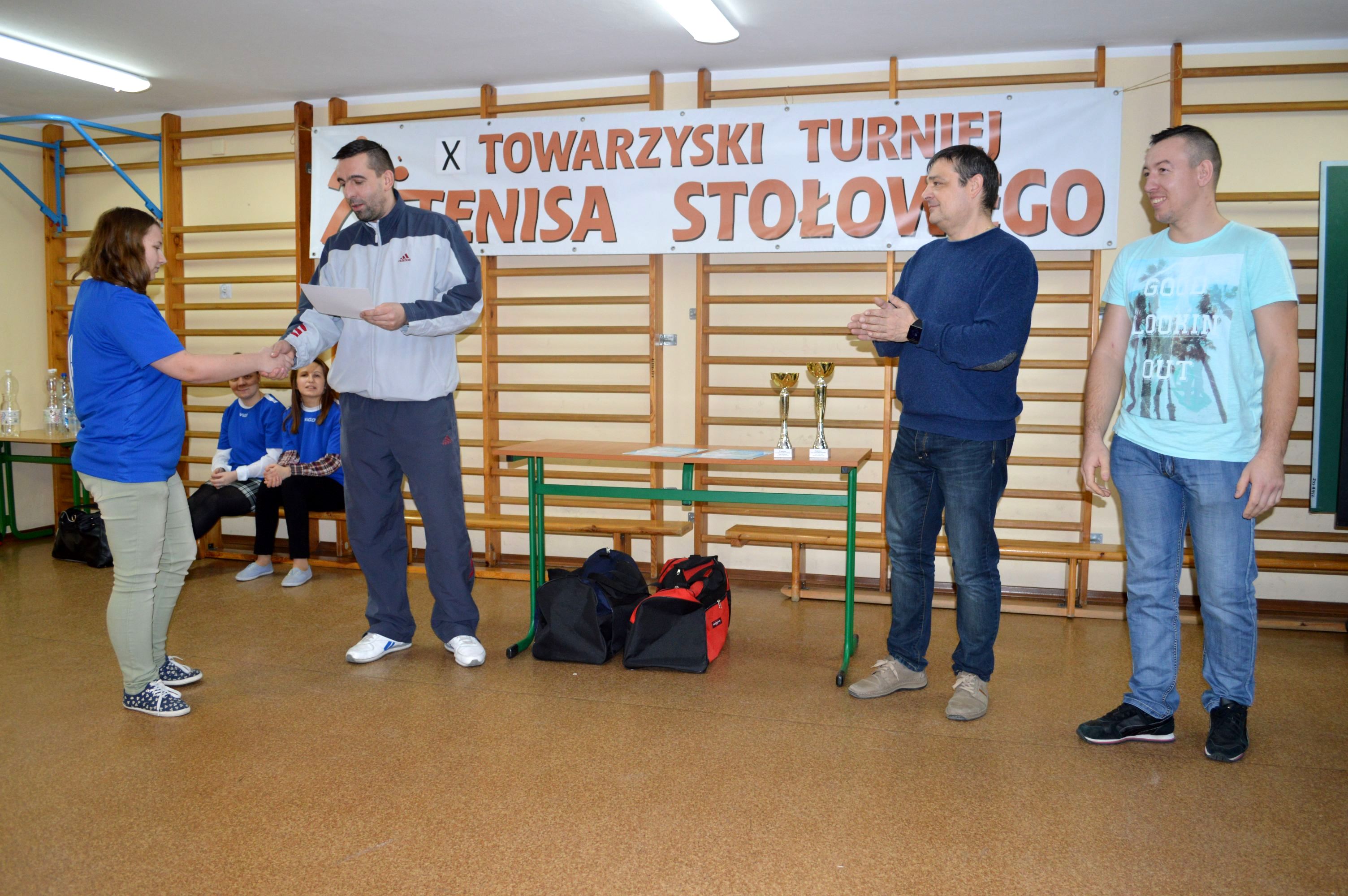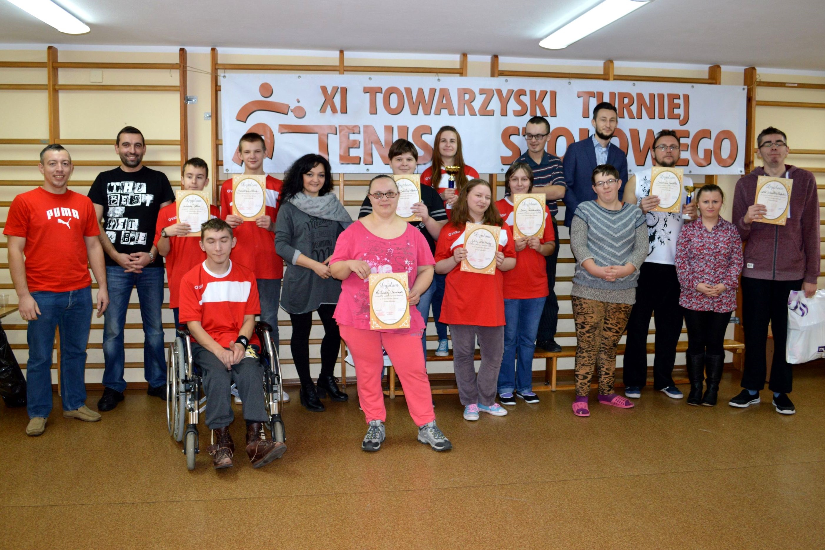 W dniu 13.12.2017r. odbył się XII Towarzyski Turniej Tenisa Stołowego. Celem turnieju były: popularyzacja gry w tenisa stołowego, integracja uczestników niepełnosprawnych intelektualnie, umożliwienie odniesienia sukcesu. W bieżącym roku gośćmi naszej placówki byli podopieczni Środowiskowego Domu Samopomocy w Sokołowie Podlaskim. Zawody odbywały się w kategoriach dziewcząt i chłopców. W klasyfikacji drużynowej zwyciężyli ŚDS w Sokołowie Podlaskim, uczniowie naszej szkoły zajęli II miejsce.